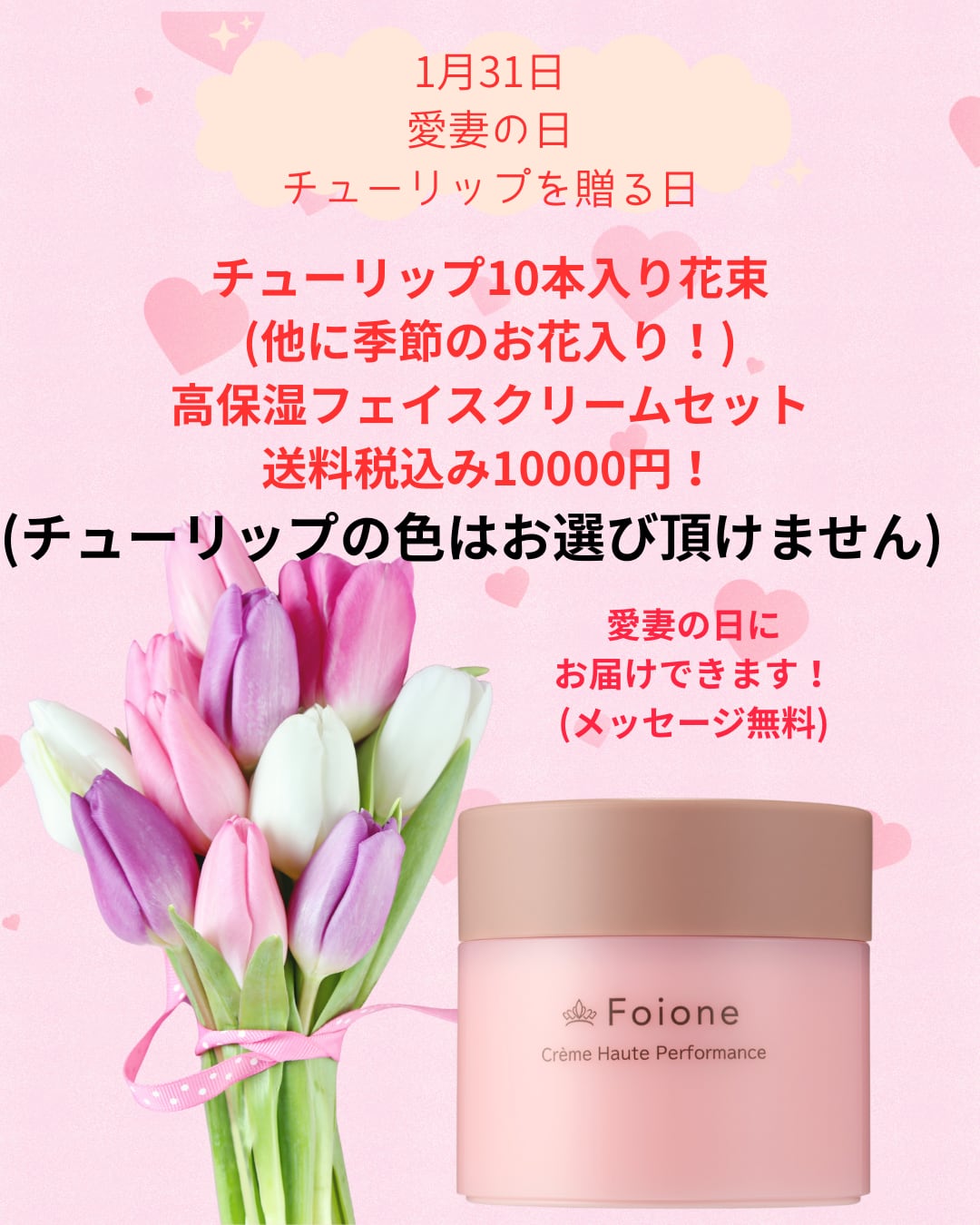 【愛妻の日にぴったり!フォアーネ保湿クリーム付き!チューリップ入り花束】登場!