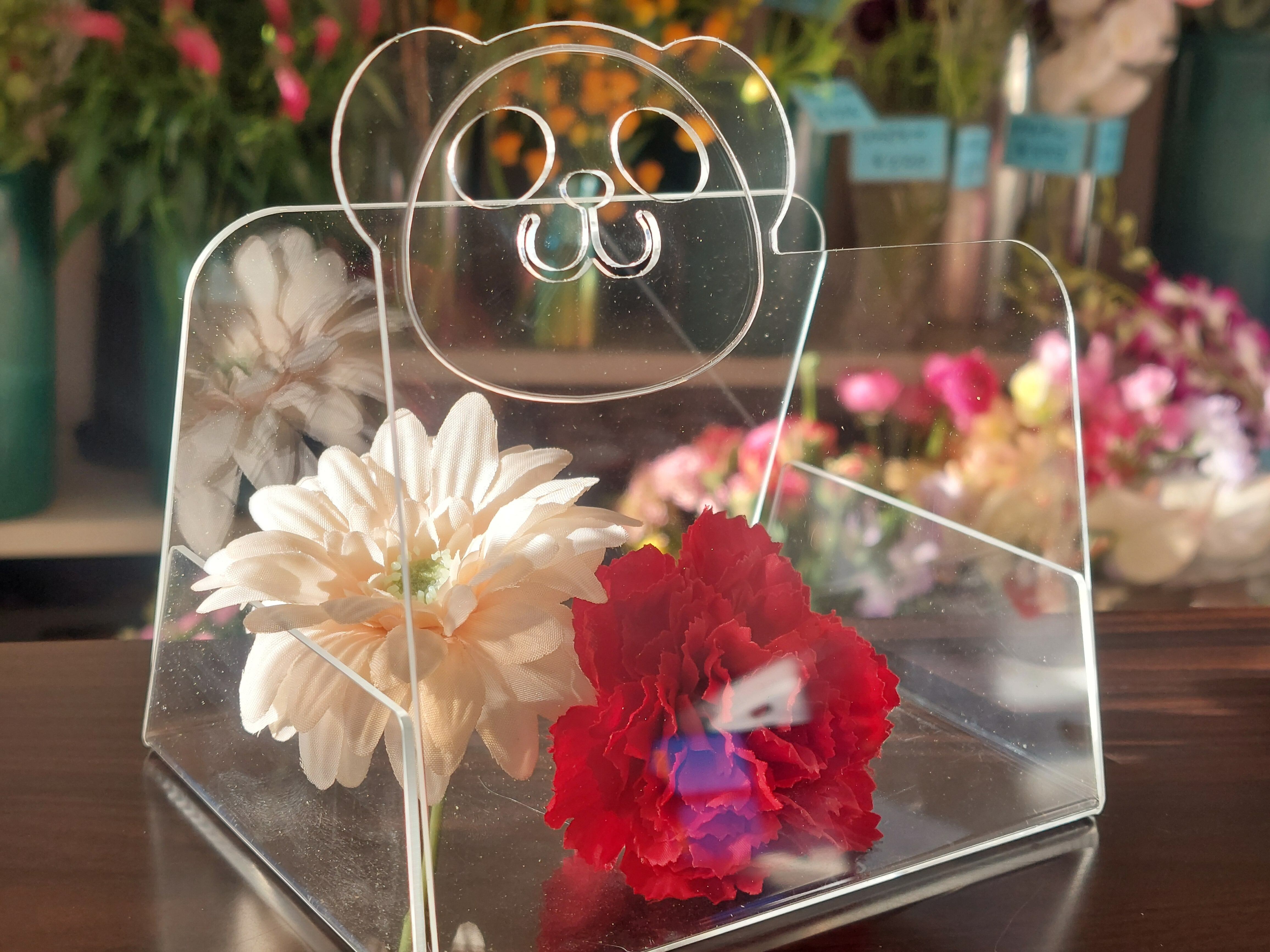 キュートなパンダのそらくんがお部屋を彩るアレンジメント。ピンクの造花が優しい雰囲気を演出し、母の日や誕生日プレゼントにぴったりです。オリジナルのアクリルケースにパンダがひょっこりと顔を出している姿は、見ているだけでもほっこりと癒されます。